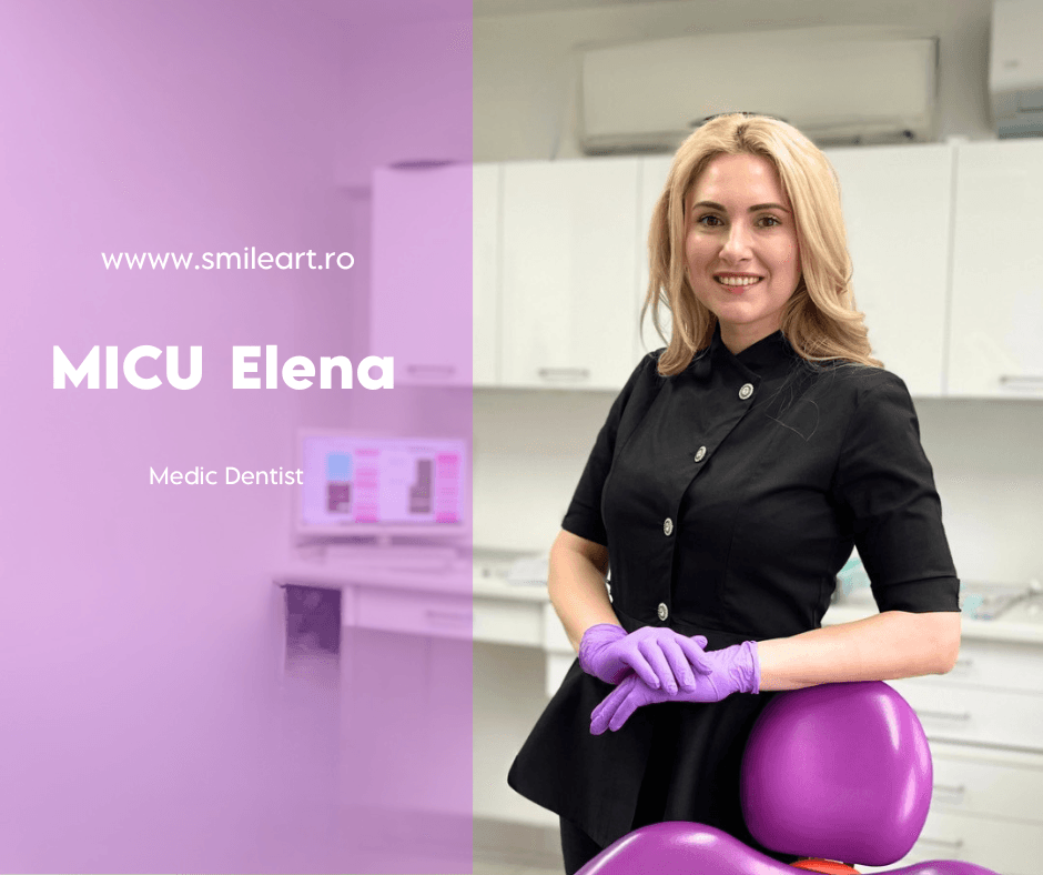Dr. Elena Micu a absolvit Facultatea de Medicină Dentară la Universitatea de Medicină și Farmacie „Dunărea de Jos” din Galați.