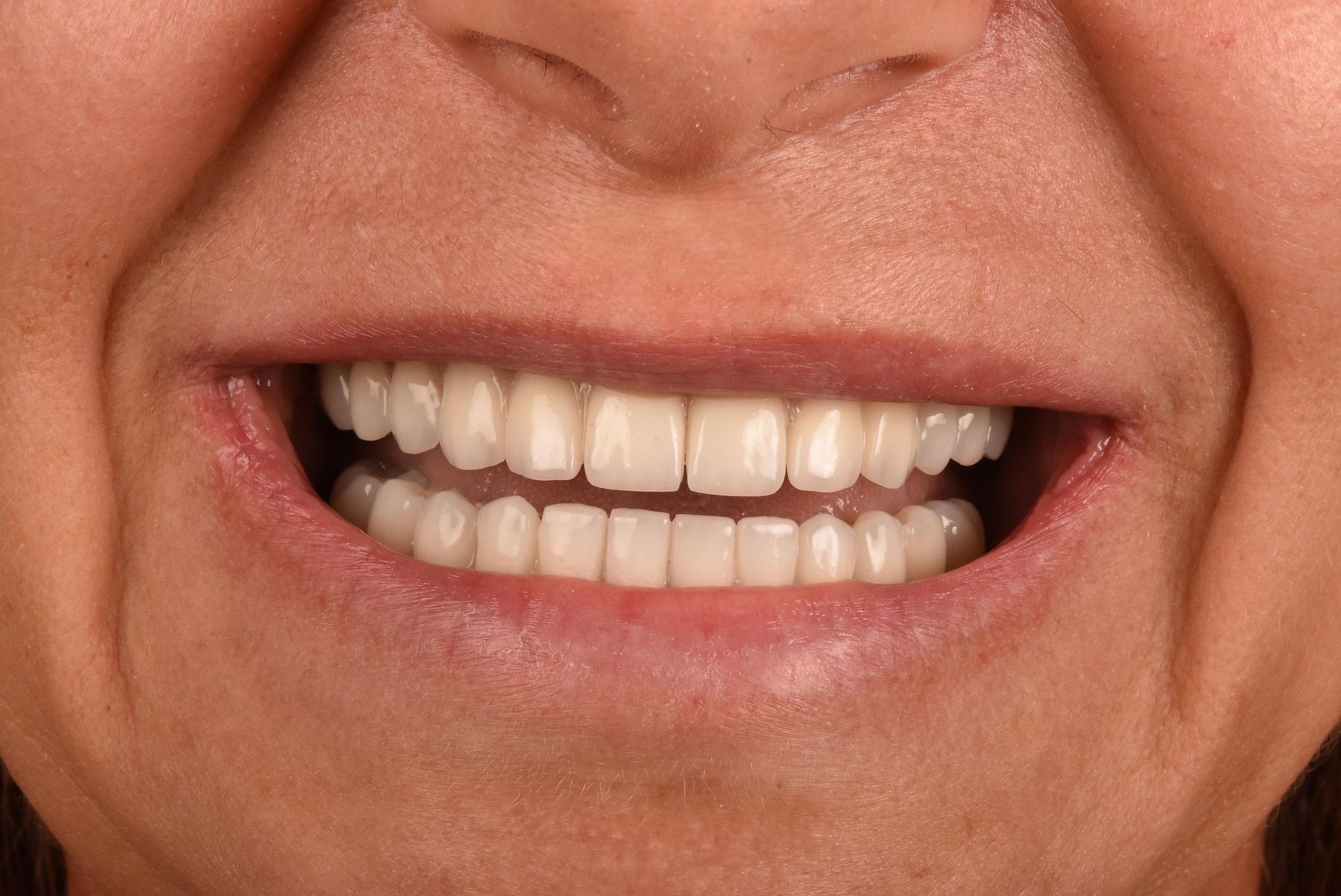 Lucrările protetice sunt realizate din materiale, precum zirconiu sau ceramică presată, care imită aspectul natural al dinților și sunt rezistente în timp.